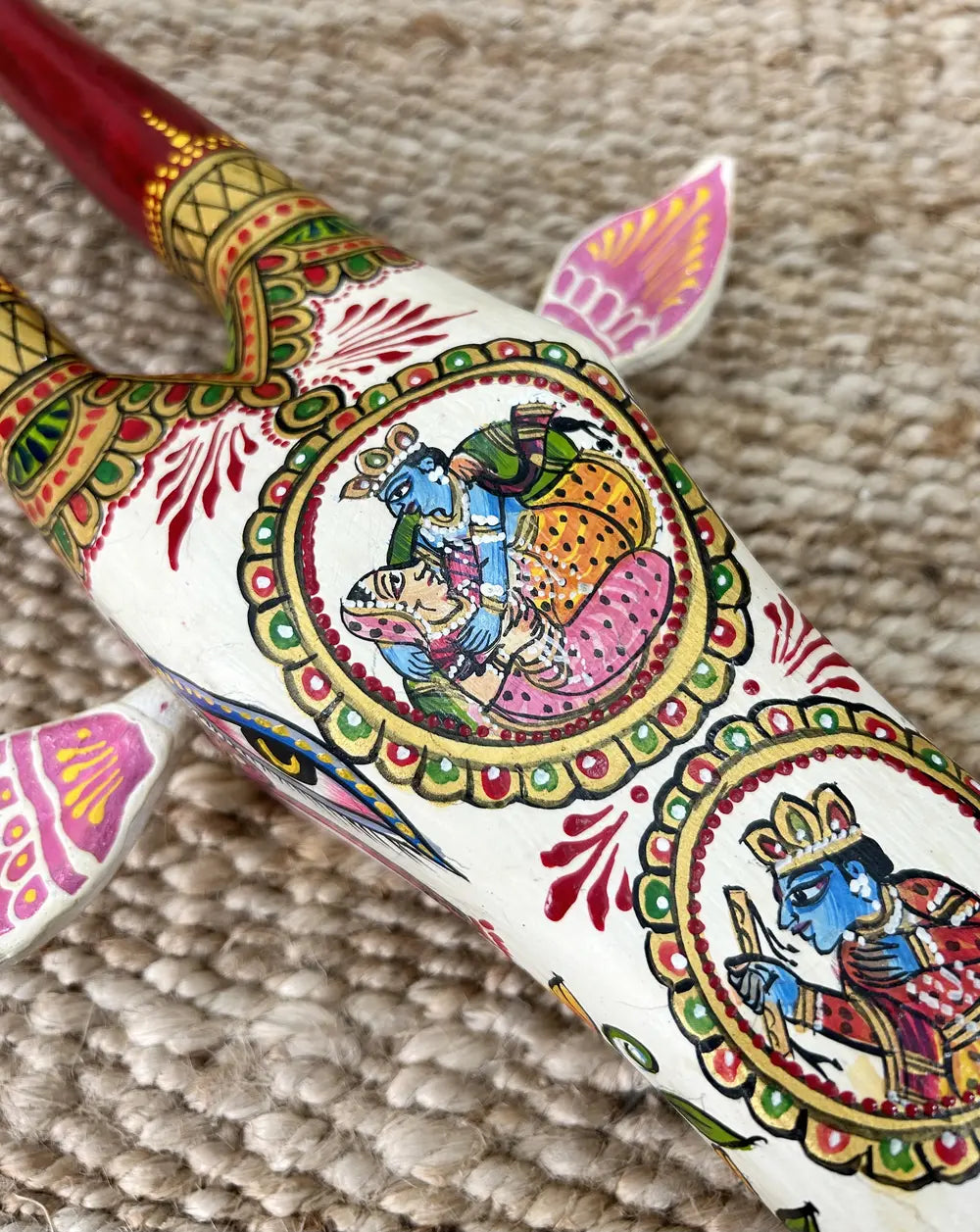 Welcome to Rajasthan’s royal legacy — the wooden hand-painted Cow Head, a timeless symbol of art and tradition. Inspired by the vibrant culture and miniature paintings of the desert land, this masterpiece is adorned with rich colors, intricate motifs, and storytelling patterns that reflect the grandeur of Rajasthani craftsmanship.