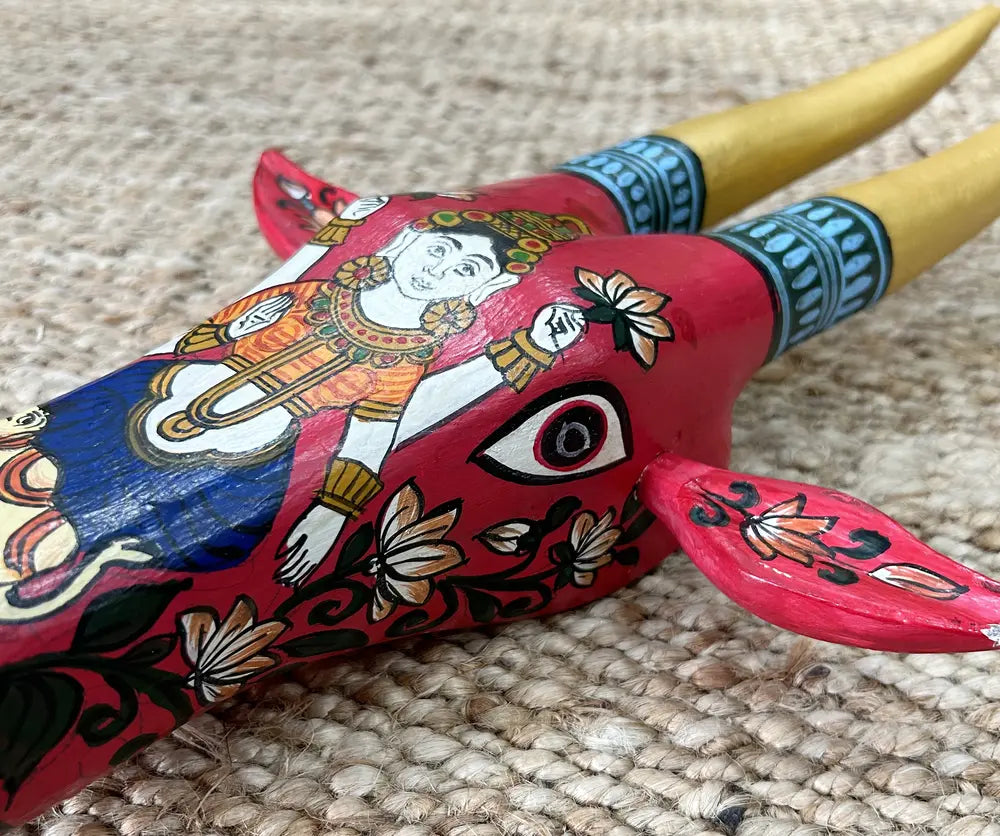 Welcome to Rajasthan’s royal legacy — the wooden hand-painted Cow Head, a timeless symbol of art and tradition. Inspired by the vibrant culture and miniature paintings of the desert land, this masterpiece is adorned with rich colors, intricate motifs, and storytelling patterns that reflect the grandeur of Rajasthani craftsmanship.