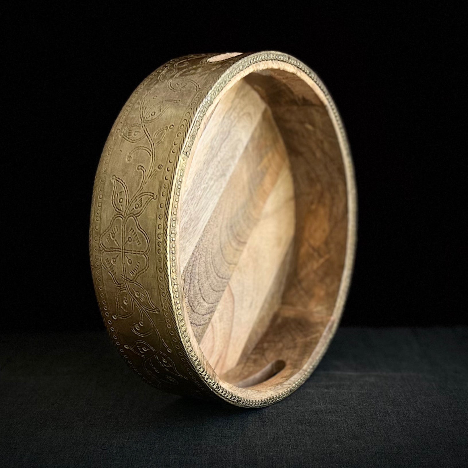 Perfect Home Decor :This antique brass natural wood serving tray is not only great for serving, but also for using it as a home deocor item base. Perfect for placing and displaying it on your ottoman, desk, table and more with your favorite home décor products.Dimensions : Length = 30 Cm, Width = 30 Cm, Height = 10 Cm.