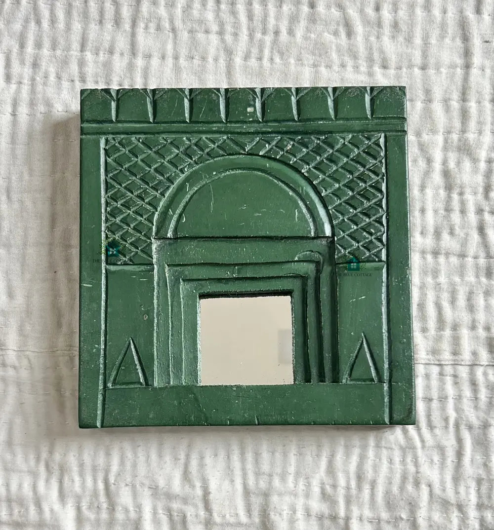 Bring a royal touch to your home décor with this handcrafted wooden jharokha mirror frame. Inspired by traditional Rajasthani architecture, each piece features intricate carvings and mini mirrors that add a charming ethnic flair to any wall.