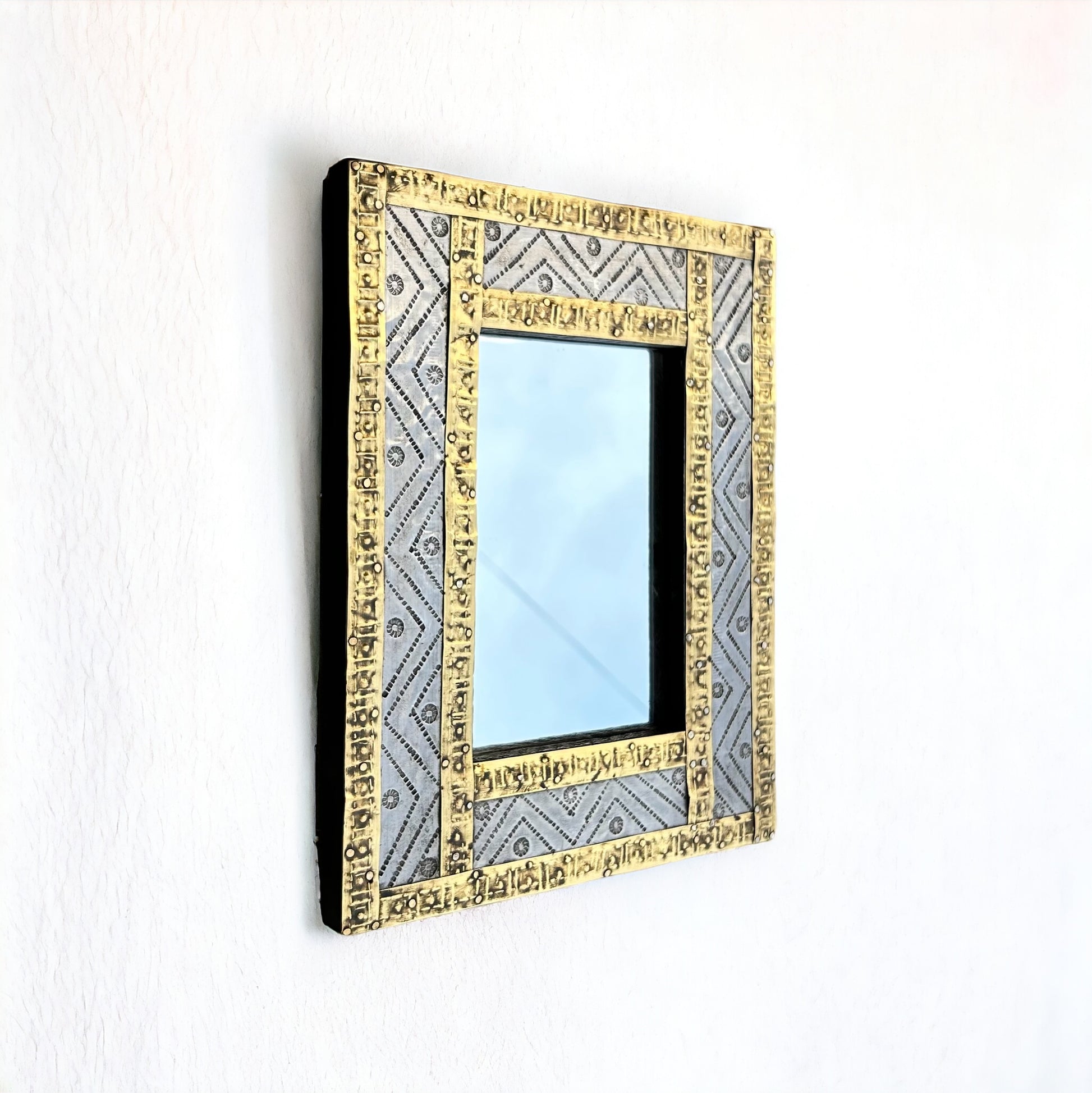 Our mirror frames are more than just functional pieces—they are works of art handcrafted by skilled artisans. Each frame undergoes a meticulous process, from selecting premium wood to intricately embedding brass details. The result is a stunning creation that exudes sophistication and craftsmanship. Handcrafted with premium hardwood Intricate brass inlay for a touch of opulence Unique designs inspired by traditional craftsmanship Durable finish for lasting beauty Each frame is one-of-a-kind, showcasing natural variations Timeless Appeal for Any Space Enhance the ambiance of your home or office with the timeless appeal of our wooden mirror frames. Whether you're decorating a contemporary loft or a classic study, these frames effortlessly elevate any environment.